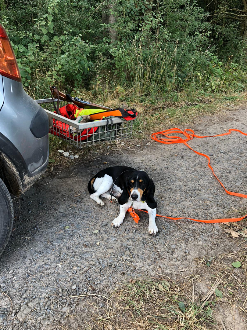 Erle wird jagdlich geführt. Sie hat jagdliche Brauchbarektsprüfung in den Fächern Stöbern und Schweiß. Sie ist spurlaut.